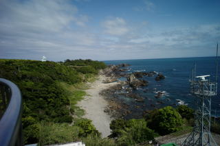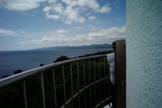 潮岬灯台は本州最南端にある灯台でその外観の美しさに惹かれ、私は一度は行ってみたいと思っていました。それでも遠くて他に観たいものがないということで、先送りしていました。今回、スーパーくろしお利用でアクセスがよくなることを知り、串本海中公園や橋杭岩などの観光資源があることを知ったので重い腰を上げたのでした。一度は行ってみたかった潮岬灯台もとても良かった。来た甲斐がありました。灯台に登って辺りを見回すと、天気がよかったので遠くまで見渡すことが出来ました。私が見たかった南側の水平線も見ることが出来ました。