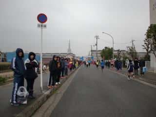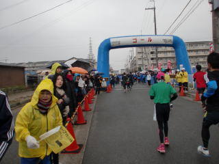 5キロ地点からゴールまでは右側をハーフマラソンのランナー、左側を10キロのランナーが走りましたが、ハーフマラソンのランナーが猛スピードで駆けて行くので、道幅が狭くなって少しペースダウンしたように思います。6キロのところ(けやきの郷)でブラスバンドの演奏と給水所がありましたが、そのまま走り抜けました。ここを通過する際にハーフマラソンのランナーと手が接触したのも、その後の走りに少し影響した気もします。