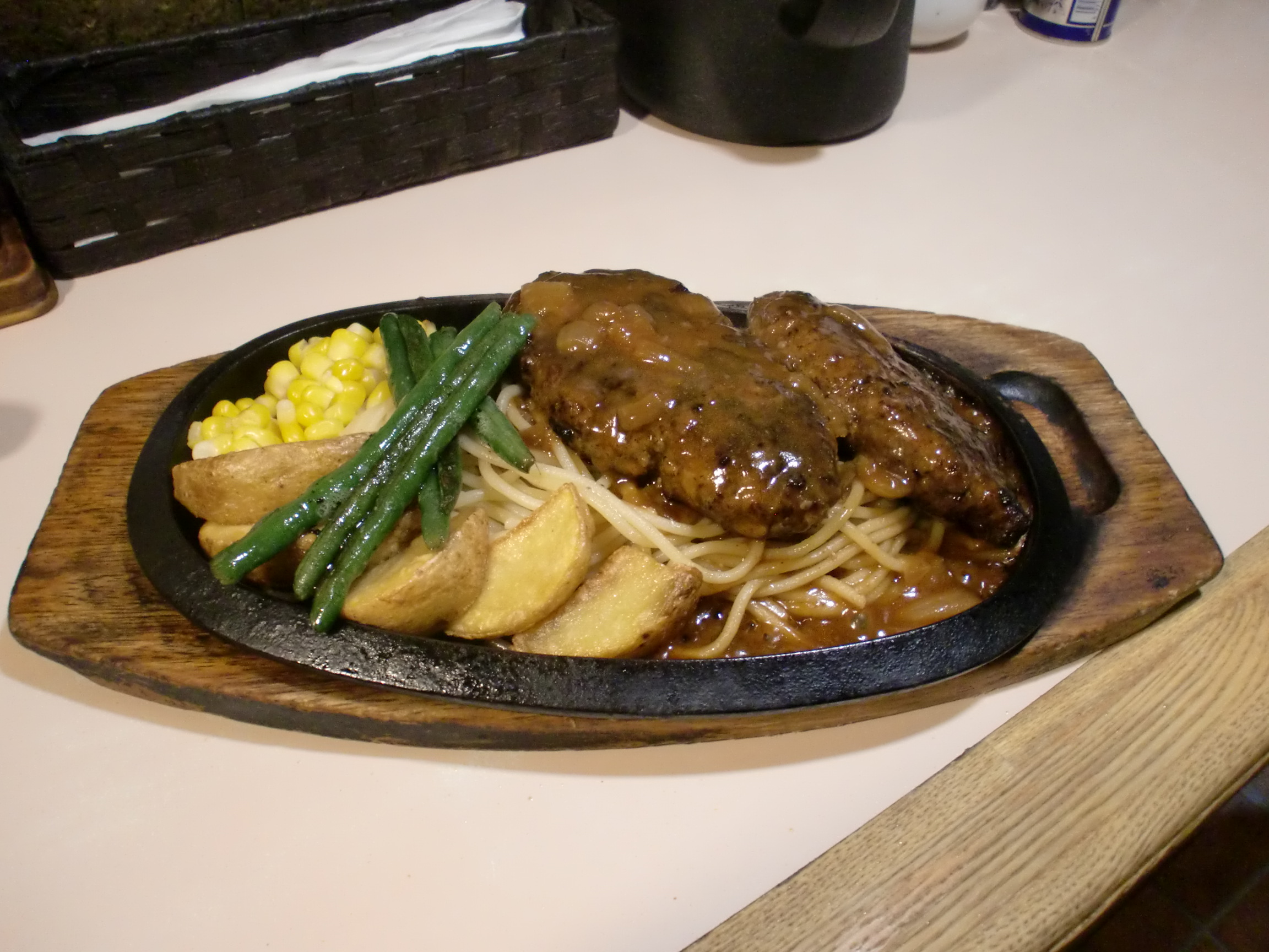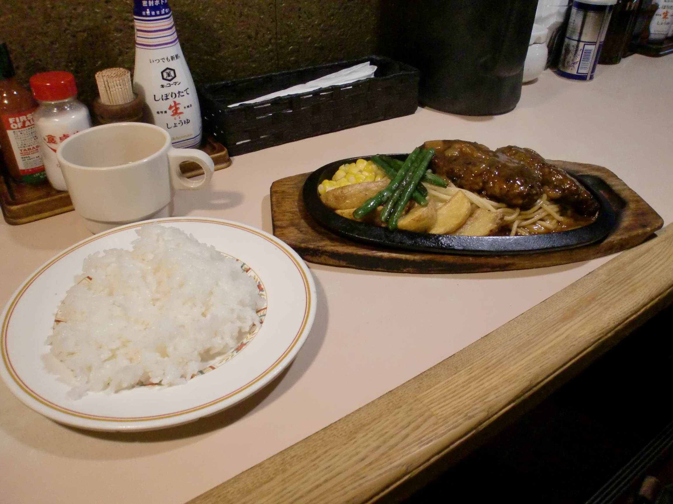 ぼく、たこちゃん。美味しい食べ物に目がない50代のおじさんなんだ。ぼくが子供の頃はファミリーレストランでハンバーグ定食を家族で食べるということはなく、外出して家族で食事をする時には、うどん、そば、カレー、オムライス、中華そばなんかを食べていた。母親が夕食でハンバーグを出すこともなく、ハンバーグを食べる機会としては弁当でマルシンハンバーグを食べるくらいだった。ぼくが20才の頃になって、「大きくなれよ」のフレーズで大いに売れた、丸大ハンバーグが脚光を浴び、レトルト食品で手軽なので、晩ごはんのおかずによく出るようになった。どちらのハンバーグも家庭的な味できらいではないのだが、一人暮らしをするようになって、自分で買い求めて食するということはなかった。その分、ファミリーレストランなどの飲食店で美味しいバンバーグがないものかとガイドブックを見て訪ね歩くようになった。ぼくはどちらかというと焼けた鉄板に乗せられ油を跳ね上げながら出てくるバンバーグのほうが、白い皿にちょこんと乗せられて出てくるそれより好きなんだ。ソースはデミグラスソースよりももう少しあっさりした、ビネガー入りのソースの方が好きだ。いくつかの店でハンバーグを食したが、今ではハンバーグはここで充分という気持ちになっている。その店はJR御茶ノ水駅前にあるカロリーという店(明治大学の近くにあるので、明治大学の学生さんやOBがよく来られる)だが、ここのハンバーグはあっさりしていて、いくつ食べてもあきない(あまり大きくなく、追加注文ができる)。から揚げも大きくて美味しいので、一度行かれてはどうかと思う。カロリーを見つけるまでは、美味しいハンバーグに出会うことができず、ある日、自分で作ってみようと思った。材料は、牛豚あいびきミンチ(ぼくの場合、一度にたくさん作るので、800グラムくらい)、たまねぎ(2個)、ピーマン(一袋)、青ネギ(適量)、卵(3個)、和風だし(2袋)、片栗粉(適量 つなぎに必要)それからビネガーの代わりに餃子の具味付け用(富士食品工業)を2袋入れて、20分程掛けてこねた(大きめのサラダボウルが必要)。それを適当な大きさにしてラップで包んだ。3時間程、冷蔵庫で寝かせて、厚めの鉄板で焼いたが、少し酸っぱい塩味がして、美味しかった。ソースがいらないくらいだが、好みによってとんかつソースをかけるのもよいかと思う。大量に作って、3日ほどかかって食べるので、3連休で暇な時くらいしか作れないが、ぼくはジューシーなハンバーグのことを考えるとお腹が鳴るんだ。