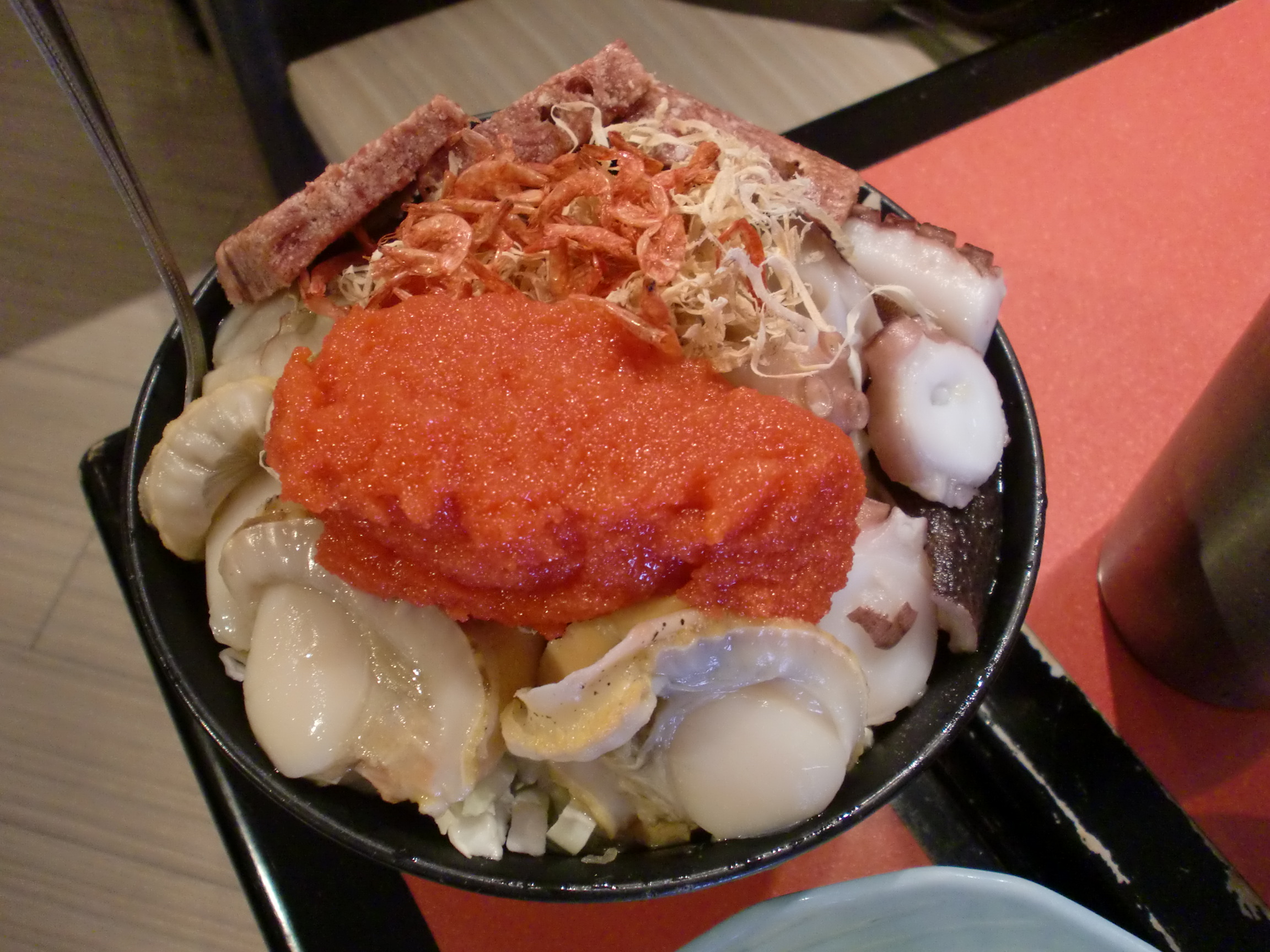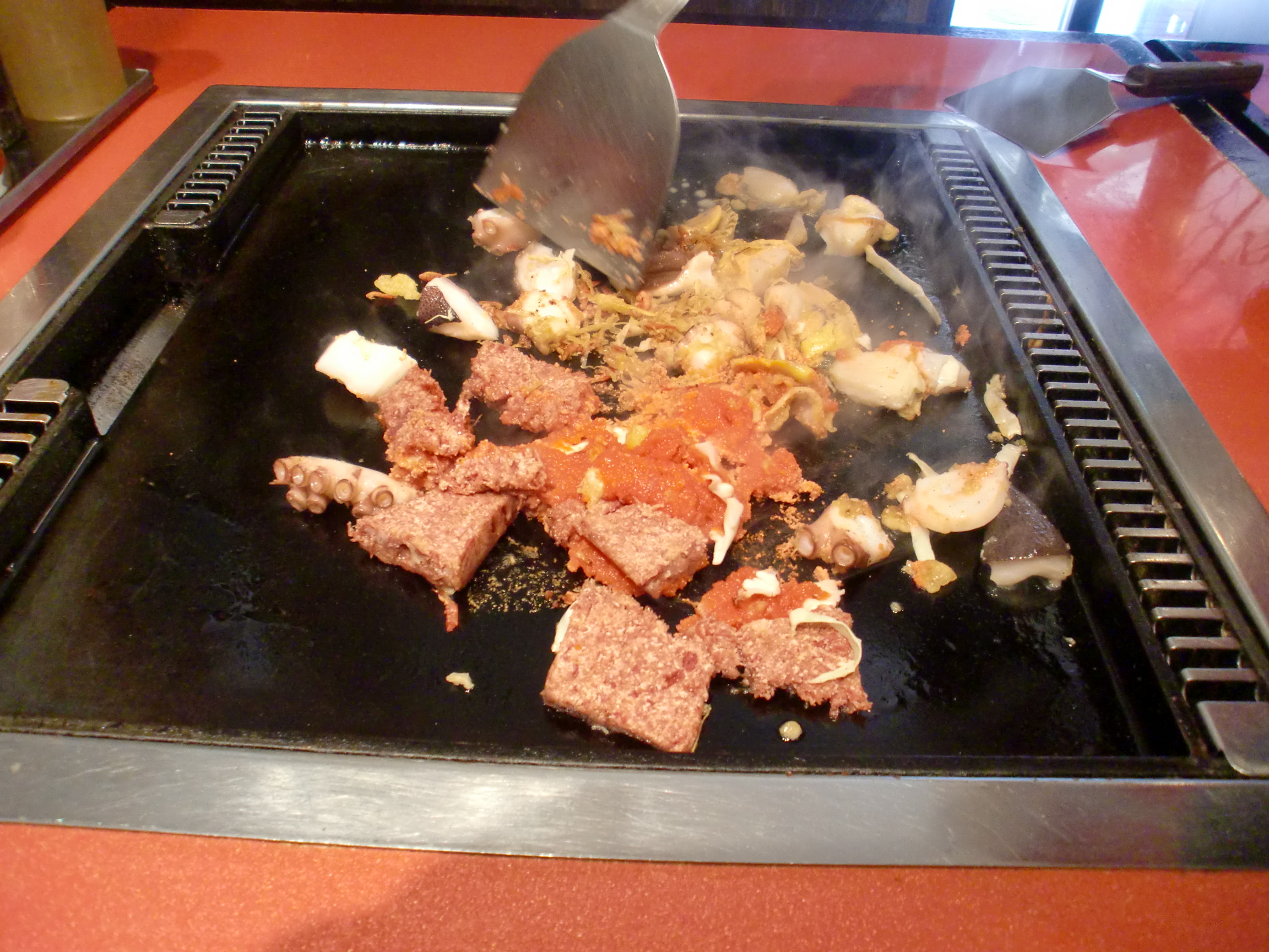 ぼく、たこちゃん。美味しい食べ物に目がない50代のおじさんなんだ。ぼくが初めて一人で東京に出掛けたのは今から35、6年前だけど、その頃は大阪でもんじゃ焼きという食べ物を知っている人は極わずかだったと思う。関西にはお好み焼きという美味しい食べ物があり、鉄板で粉もんを食べるなら新しいものに挑戦する必要はなく、お好み焼きで充分ではないかという保守的な考え方が浸透していたのだと思う。今でもそうだし、ぼくも同じ考えなんだけど、でもたまに月島で美味しいもんじゃが食べたいと最近は思うようになったんだ。最初にもんじゃ焼きを食べたのは東京でではなかった。今から20年程前に阪急豊中駅前にもんじゃ焼きの表示が出ていて、めずらしいなぁ、ひまだから入ってみようかという感じで入店したのだった。今ならもんじゃ焼きを美味しく食べるコツというのはわかっているけど、当時は何にもわからなかった。だからトッピングも、お好み焼きと同じのがいいんじゃないかと思って、ネギや豚肉やタマゴをトッピングしたと思う。薄味なのにソースを掛けないのかという印象だけが残った。そんなことがあってそれからしばらくはもんじゃ焼きを食べたいと思ったことはなかった。最近になってもんじゃ焼きを美味しそうに食べる人をテレビで見て、それほど美味しいのならもう一度挑戦してみるか、やはり発祥の地(?)もしくは聖地(?)と言われている月島でレクチャーを受けながら、食べてみようと思った。それで東京に出掛けた時に月島に行き午前11時の開店と同時に店に入り、店員さんにペコリと頭を下げ、美味しいもんじゃ焼きを食べさせてくださいと頼んだ。店の名前やその時に何を食べたかは記憶に残っていないが、店員さんが親切に教えてくれた。明太子とチーズの味と旨味をベースに魚介類の塩味を乗せれば味付けは十分で、味が付いていない豚肉や野菜類は少しにした方がいいということに気が付いたんだ。だからもんじゃ焼きでよく見る組み合わせは、明太子、チーズ、餅だと思う。半年ほど前に浅草でもんじゃ焼きを食べたが、その店でもこの組み合わせがメニューの一番最初に出ていた。もんじゃ焼きを食べるのに2つ気になることがある。ひとつは見た目の悪さ、もうひとつはお焦げを食べるということなんだけど、見た目はどうしようもないから慣れるしかないと思うんだ。お焦げはアジア料理では売りの一つとなっているので楽しめばいいんじゃないかと思う。実際、もんじゃ焼きのお焦げを食べたくて月島に来ているアジア人の方をたくさん見る。そういうわけで久しぶりに無性にもんじゃ焼きを食べたくなったぼくは月島でもんじゃ焼きを食した。バンビ4号店に入りメニューをを見ると明太子、チーズ、餅というのがあったが、今日はデラックスにしようと考え、餅をやめて、コーンビーフ、タコ、ホタテを入れてもらった。明太子、チーズの程よいしょっぱさに加え、魚介類などの旨味が加わりとても美味しかった。程よく桜エビとキャベツが入っていてボリューム感もあった。もう一枚ベーコンとイカのを注文するつもりだったけど、お腹がいっぱいになったんで店を後にしたんだ。