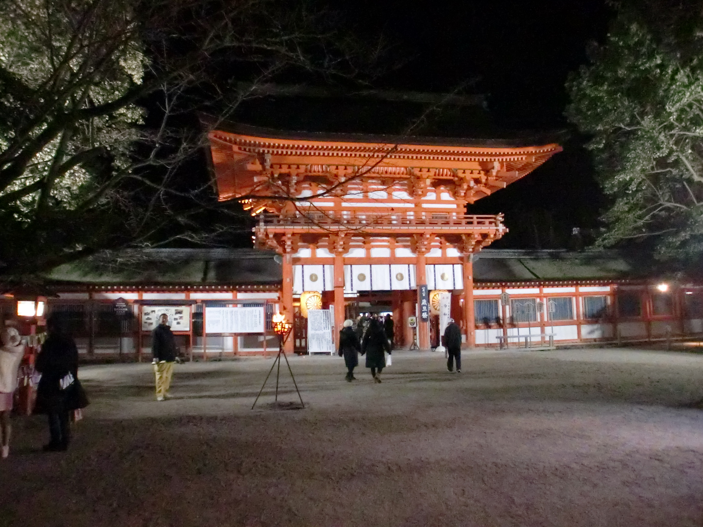 空田は、下鴨神社のお参りを済ませると楼門をくぐった。しばらく歩いて振り返るとライトに照らされて楼門が浮かび上がっていた。