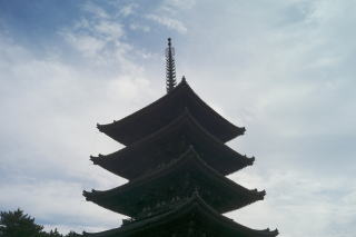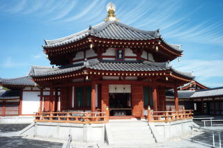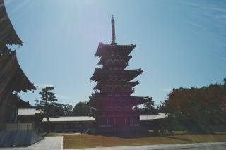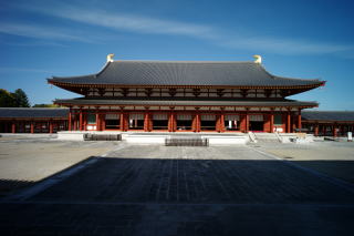 もう一度、金堂に入り薬師三尊像を見て、もう一方の出口から出ようとすると大講堂が見えました。大きな建物に圧倒されて、思わずシャッターを切りましたが、この建物は2003年に再建されたとのことです。このあと食堂(じきどう)の安らぎに満ちた、まるで自分が空中を漂っている気分にさせていただける絵画を見た後、興福寺へと向かいました。