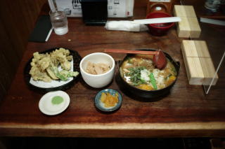 昼食は、もちろんほうとうを食べようと思っていたのですが、ガイドブックを見ると「小作」という店が良さそうなので、観光センターから50メートルほどのその店に入りました。かぼちゃ入りほうとうとまったけご飯が1500円でしたが、舞茸の天ぷら500円とともに注文しました。野菜のうまみがたっぷりと味わえたので、満足でした。午前11時45分に昇仙峡行きのバスが出るので、「小作」は30分ほどで出ましたが、お客さんが多い割にはゆったりと座れて食事もすぐに運ばれてきたので良い店だなと思いました。