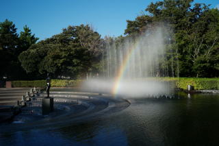 昇仙峡からの帰りは渋滞に巻き込まれることもなく、そのバスがそのまま山梨県立美術館に行ったので、午後3時過ぎには館内に入り、ミレーの作品などの名画を見て、絵葉書、マグネット、ミラーなどのグッズを見てから、芸術の森公園で富士山を眺め、噴水のところで光彩を放つ虹を見る余裕がありました。展示されている絵画も素晴らしく、また来たいなと思いました。